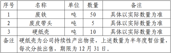 亳州海螺水泥有限責任公司擬對公司內(nèi)部廢舊物資進行公開招標,選定中標人。現(xiàn)將相關(guān)事宜公告如下: