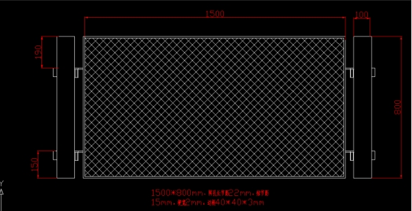 長(zhǎng)*寬1500*800mm,網(wǎng)孔長(zhǎng)節(jié)距22mm,短節(jié)距15mm,梗寬2mm,邊框角鐵40*40*3mm |