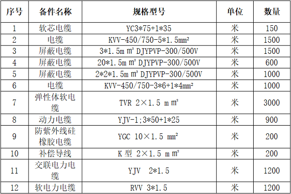 1.招標物資名稱:電纜。