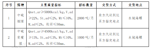 1.標(biāo)的內(nèi)容:中硫煙煤、中硫貧瘦煤
