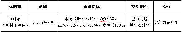 根據(jù)巴中海螺生產(chǎn)經(jīng)營(yíng)需求,現(xiàn)對(duì)生料用煤矸石采購(gòu)業(yè)務(wù)進(jìn)行公開招標(biāo),為體現(xiàn)公平、公正、公開、透明的原則,現(xiàn)將招標(biāo)相關(guān)事宜公告如下: