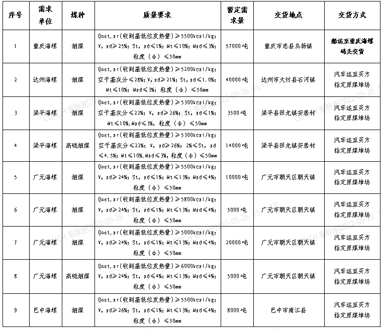為進一步提升煤炭采購招標的公平、公正、公開透明性,根據(jù)區(qū)域2022年10月份煤炭需求,現(xiàn)組織開展煤炭采購網(wǎng)絡招標,特將招標事宜公告如下: