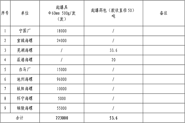 為做好安徽省內(nèi)基地公司2023年度火工材料附屬產(chǎn)品采購(gòu)工作,本著“公開(kāi)、公平、公正、透明”的原則,開(kāi)展火工材料附屬產(chǎn)品的招標(biāo)工作,現(xiàn)將招標(biāo)基本信息發(fā)布如下: