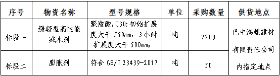 1.標(biāo)的內(nèi)容:減水劑、膨脹劑;