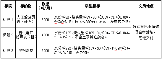 2.投標(biāo)人需具有較強的保供能力,標(biāo)段1月供貨能力不低于0.5萬噸,標(biāo)段2不設(shè)置最低供貨量,標(biāo)段3月供貨能力不低于0.3萬噸。同時,為維護直供關(guān)系,貿(mào)易渠道貨源不能為川煤華榮公司下轄嘉川電廠、代池壩電廠及南江煤電公司粉煤灰資源。