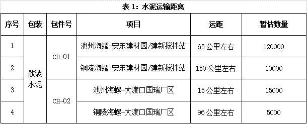 2.標段運輸起止:安東建材園,建新攪拌站,大渡口國瑞廠區(qū)等
