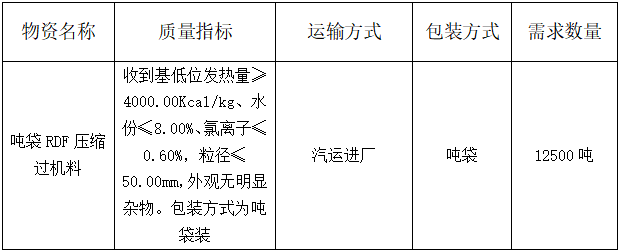 1.招標(biāo)內(nèi)容:本次競價標(biāo)的為2024年12月-2025年3月蕪湖海螺替代燃料項目,具體需求信息詳見下表: