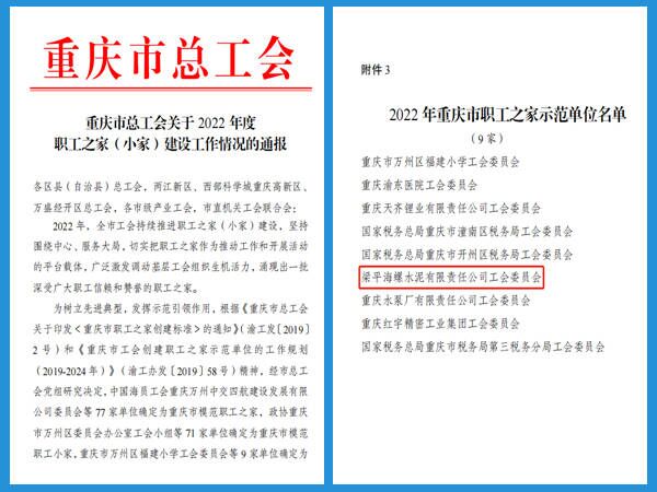 1月4日,重慶市總工會(huì)傳來(lái)喜訊,梁平海螺水泥有限責(zé)任公司工會(huì)委員會(huì)榮獲“重慶市職工之家示范單位”稱號(hào)。