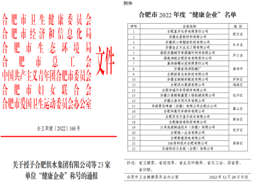 近日,巢湖海螺榮獲合肥市2022年度“健康企業(yè)”榮譽稱號,成為合肥市建材行業(yè)唯一一家獲得此榮譽企業(yè)。