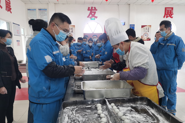 湯圓作為元宵節(jié)傳統(tǒng)文化的典型元素,與“團圓”字音相仿,象征著幸福和吉祥?;顒邮紫乳_展“包湯圓”比賽,大家擼起袖子,舀餡料、搓湯圓、捏造型,在規(guī)定的時間內以湯圓的外觀、質量及數量評比出了獲獎者。比賽結束,大家分工合作、齊心協力,把剩下米粉、芝麻餡、花生餡制作成湯圓,在一片歡聲笑語中,一盤盤圓潤光滑的湯圓很快出爐。食堂工作人員將“成品”作為晚餐之一,讓全體員工一起吃湯圓過佳節(jié),湯圓甜,讓人心更甜。
