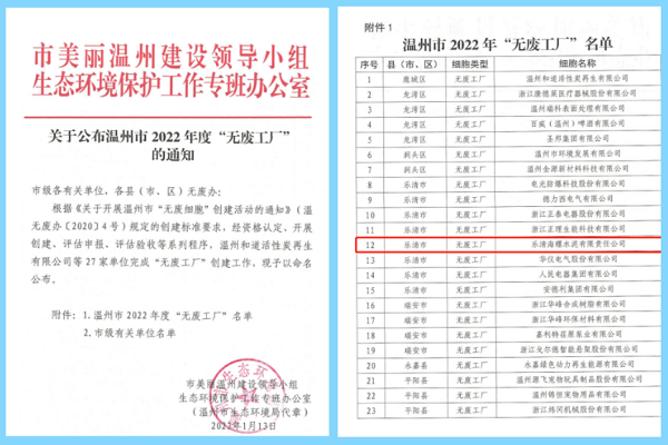 近日,溫州市美麗溫州建設(shè)領(lǐng)導(dǎo)小組、生態(tài)環(huán)境保護(hù)工作專班辦公室公布了溫州市2022年度“無(wú)廢工廠”名單,經(jīng)資格認(rèn)定、開展創(chuàng)建、評(píng)估申報(bào)、評(píng)估驗(yàn)收等系列程序,樂清海螺順利通過“無(wú)廢工廠”創(chuàng)建驗(yàn)收,獲得命名公布。