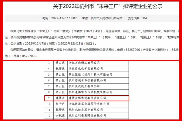 2023年2月,建德海螺收到杭州市經(jīng)信局發(fā)來的喜訊,建德海螺公司成功獲評杭州市“未來工廠”(智能工廠方向)。