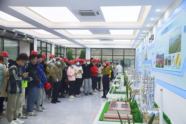 合工大師生一行在蕪湖海螺智能工廠展廳,詳細(xì)了解了海螺現(xiàn)代化智能工廠的生產(chǎn)流程。通過電子屏,同學(xué)們學(xué)習(xí)了由五大操作系統(tǒng)實(shí)現(xiàn)“一鍵輸入、全程智控”的智能工廠項(xiàng)目概況。公司講解員結(jié)合沙盤,對(duì)蕪湖海螺礦山開采、水泥熟料生產(chǎn)線、皮帶廊道和碼頭等情況進(jìn)行了詳細(xì)介紹。