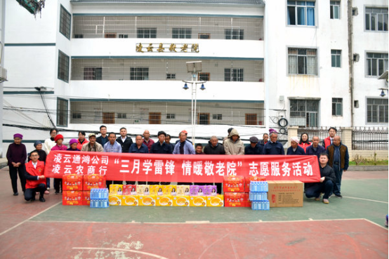 “老吾老以及人之老”,尊老敬老一直以來是中華民族的傳統(tǒng)美德。為發(fā)揚雷鋒精神,弘揚尊老敬老助老之風,切實為老年人排憂解難,做到愛老、敬老、為老。3月4日上午,凌云通鴻公司和凌云縣農(nóng)商行共赴凌云縣敬老院開展“三月學雷鋒 情暖敬老院”志愿服務活動,為老人們送去牛奶、八寶粥、小面包等慰問品。