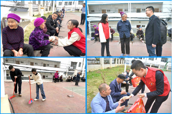 上午九點,大家?guī)е繂柶穪淼骄蠢显?,老人們熱情歡迎著我們的到來。大家分工明確,有的與老人促膝圍坐,面對面親切交談,認真傾聽老人們在敬老院的生活狀況;有的清掃院子、擦拭扶手;有的給老人分發(fā)牛奶、包子、小面包等。大家用樸實而真誠的行動表達著對老人的關(guān)愛,平日里清靜的敬老院一下子熱鬧起來,院里一片歡聲笑語,暖意融融。