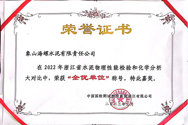 2023年3月16日上午,在浙江省水泥企業(yè)化驗室主任工作會議上,象山海螺被授予2022年浙江省水泥物理檢驗與化學分析大對比“全優(yōu)單位”稱號。