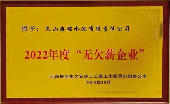2023年3月24日,文山州根治拖欠農(nóng)民工工資工作領(lǐng)導(dǎo)小組辦公室在文山舉行文山州2022年度“無欠薪企業(yè)(項(xiàng)目部)”授牌暨2023年創(chuàng)建“無欠薪企業(yè)(項(xiàng)目部)”啟動(dòng)儀式,公司榮獲云南省2022年度“無欠薪企業(yè)”,也是云南省水泥行業(yè)唯一榮獲此殊榮的企業(yè)。