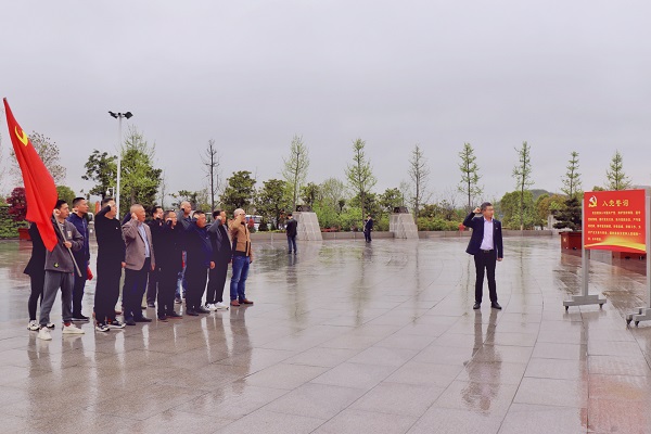 面對鮮艷的黨旗,全體黨員高舉右拳,重溫了入黨誓詞。并在紀念碑前肅立默哀、瞻仰鞠躬,表達對革命先烈的無限懷念和崇敬之情。
