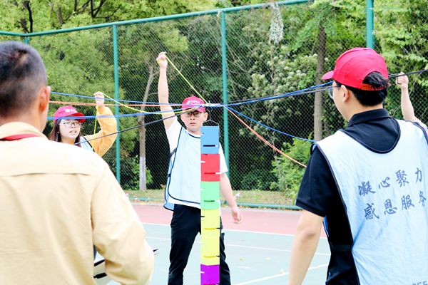在輕松的氛圍下,拓展培訓(xùn)正式拉開序幕。本次培訓(xùn)圍繞“溝通、擔(dān)當(dāng)、團結(jié)、信任、統(tǒng)籌”5個關(guān)鍵詞,先后開展了合力筑塔、極速六十秒、飛盤通關(guān)戰(zhàn)等多個團隊游戲,大家激情飽滿、巧用智慧、團結(jié)協(xié)作、拼搏競爭。