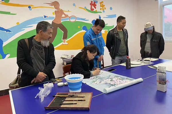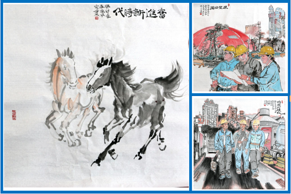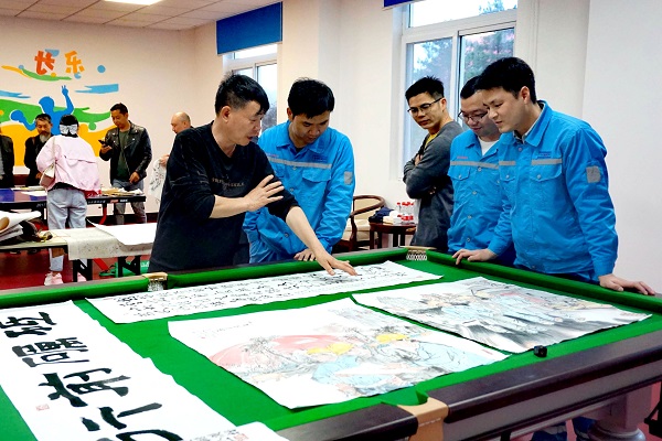 參觀結(jié)束后,畫家們分別以國畫、工筆畫、油畫等形式,經(jīng)過近2個小時的潑墨勾染盡情揮灑創(chuàng)作,10余幅將傳統(tǒng)文化與海螺水泥工業(yè)元素融合的畫作呈現(xiàn)在大家面前。