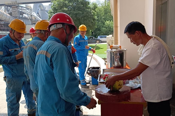 戰(zhàn)高溫與送清涼是同時(shí)進(jìn)行的,荻港海螺在全力確保檢修進(jìn)度的同時(shí),持續(xù)組織開展夏日“送清涼”活動(dòng),組織為一線工人送去西瓜、飲料、雪糕、綠豆湯、仁丹等防暑降溫物品,并叮囑每一位作業(yè)人員把安全記在心間,做好個(gè)人防護(hù),確保平安度夏。