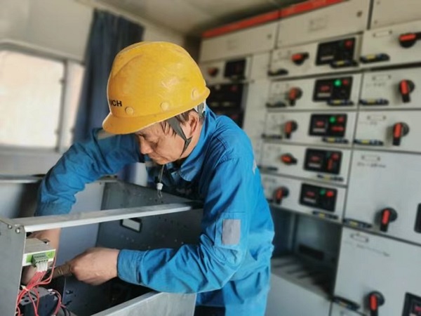 “喂,倪師傅,請(qǐng)到3#躉船上來(lái)下,這邊收塵風(fēng)機(jī)出故障了?!薄昂玫模荫R上過(guò)來(lái)處理。”接到電話(huà)后,倪師傅辦好檢修手續(xù),用最快的速度到達(dá)躉船電力室。通過(guò)檢查,原來(lái)是3#躉船收塵風(fēng)機(jī)抽屜柜需要檢修更換接觸器。這是個(gè)技術(shù)活,也是力氣活,更是細(xì)致活,設(shè)備的檢修需要耐心,容不得半點(diǎn)馬虎。“維修的時(shí)候要不斷觀察,每一個(gè)細(xì)小的環(huán)節(jié)都不能漏掉,不然會(huì)影響設(shè)備運(yùn)行”,倪師傅說(shuō)。