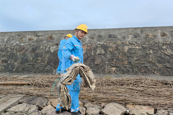 泡沫、塑料、漁網(wǎng)漁具、廢棄竹竿……志愿者們在海岸線各處認真清理,大家用垃圾袋,手抬肩扛,將這些垃圾清運出去,送到垃圾回收站進行處理。
