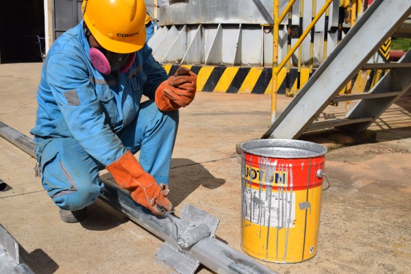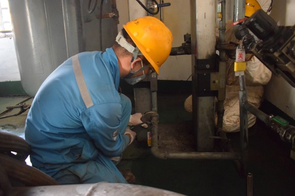 “你來刷漆、你去緊螺絲、你去清洗設備,我來接線路......”,大家互相討論著進行分工,在烈日的“炙烤”下,一絲不茍、兢兢業(yè)業(yè)的在進行申克秤干燥器保養(yǎng)、窯尾在線監(jiān)測采樣管和3AQC鍋爐取風管備件刷漆。