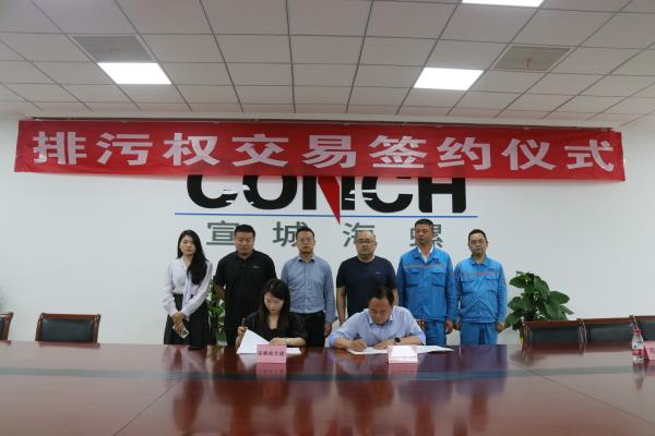 在宣城市生態(tài)環(huán)境局的指導(dǎo)下,5月31日,宣城海螺與安徽格蘭德新材料有限公司完成排污權(quán)交易。