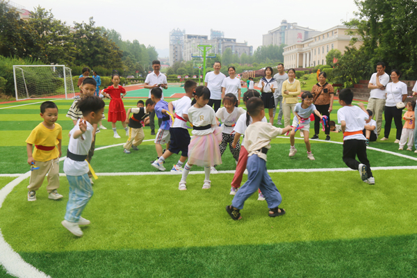 揪尾巴活動(dòng)將整個(gè)趣味運(yùn)動(dòng)會(huì)推向了高潮,孩子們攻防有度,或是不經(jīng)意間揪下別人的“尾巴”,又或是自己的“尾巴”被別人揪過(guò)去,好笑又好氣,家長(zhǎng)們不斷為孩子們喝彩,加油打氣,勾勒出一幅融洽、和諧、幸福的景象。