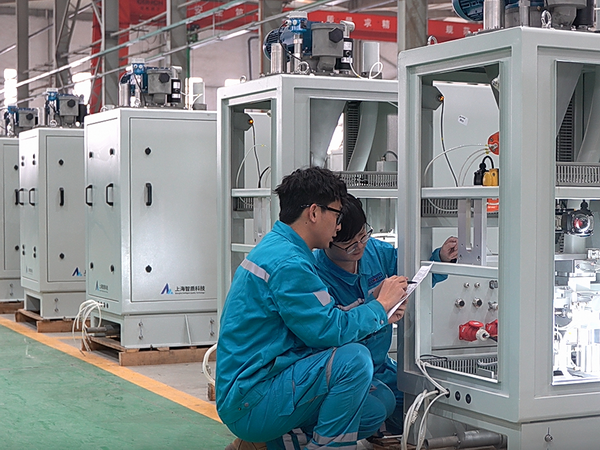 走進(jìn)蕪湖生產(chǎn)裝配基地,一排排調(diào)試完畢的智能化設(shè)備整裝待發(fā)。現(xiàn)場(chǎng)負(fù)責(zé)人關(guān)浩告訴我們,4月以來(lái),生產(chǎn)線(xiàn)已開(kāi)足馬力滿(mǎn)負(fù)荷運(yùn)轉(zhuǎn),這個(gè)月將有170余臺(tái)設(shè)備發(fā)往項(xiàng)目現(xiàn)場(chǎng)。面對(duì)大批量個(gè)性化生產(chǎn)交付任務(wù),給生產(chǎn)組織帶來(lái)巨大挑戰(zhàn),即便生產(chǎn)再忙,大家也保持著嚴(yán)謹(jǐn)細(xì)致的作風(fēng),鉆研生產(chǎn)成套技術(shù)?!霸谏a(chǎn)一線(xiàn)時(shí)間久了,我們對(duì)‘改善即是創(chuàng)新、人人皆可創(chuàng)新、處處皆可創(chuàng)新’感受很深。比如以前的自動(dòng)發(fā)送站使用的是進(jìn)口閥島,價(jià)格高不說(shuō),供貨周期還長(zhǎng)。大家就提出了國(guó)產(chǎn)品牌替代的設(shè)想,經(jīng)過(guò)多次選材和反復(fù)測(cè)試,選擇了這款國(guó)產(chǎn)閥島,在保障產(chǎn)品性能的同時(shí),單套成本還節(jié)約了6000元以上?!标P(guān)浩告訴我們。
