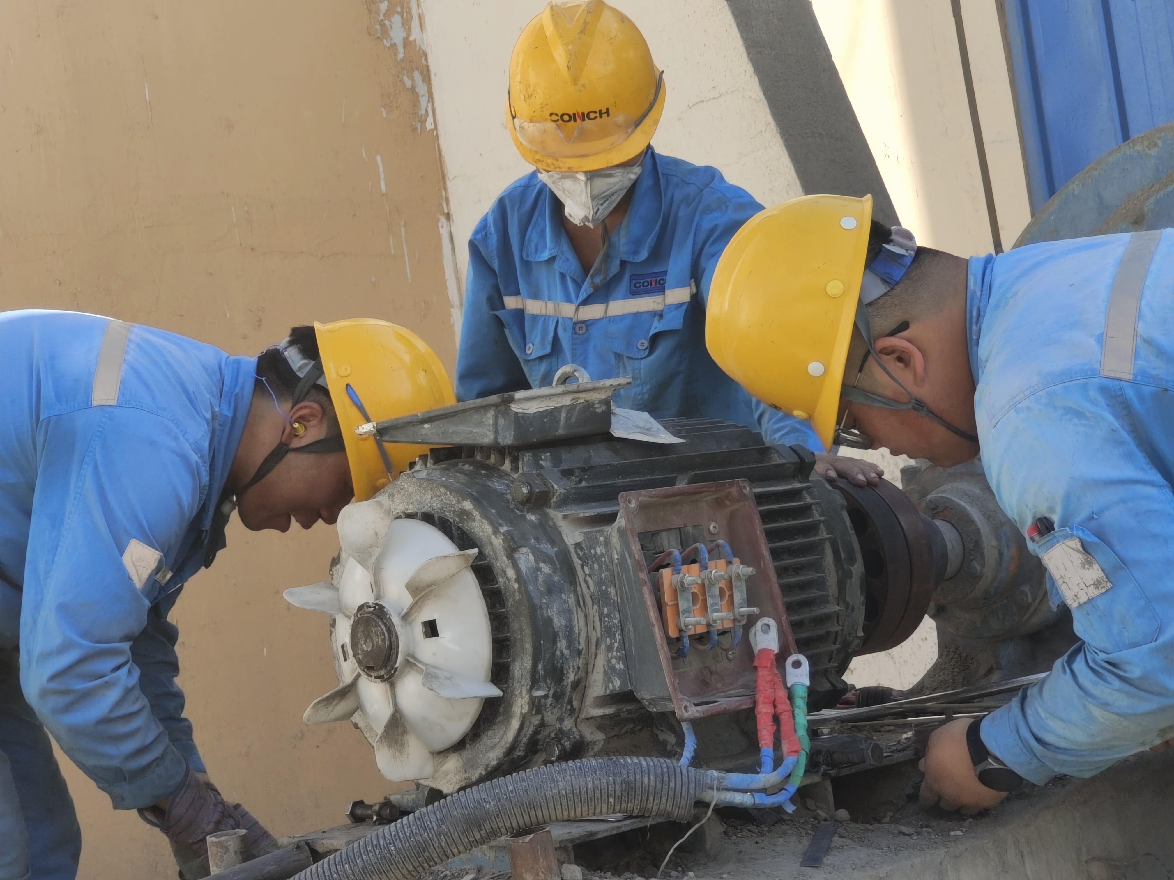 熟料B道風機電機出現(xiàn)故障,機修人員更換恢復找正,解決收塵器風機電機殼體底座開裂隱患。保安全,保穩(wěn)定,你們的工作很平凡卻責任重大,你們的工作繁瑣卻從不敷衍。