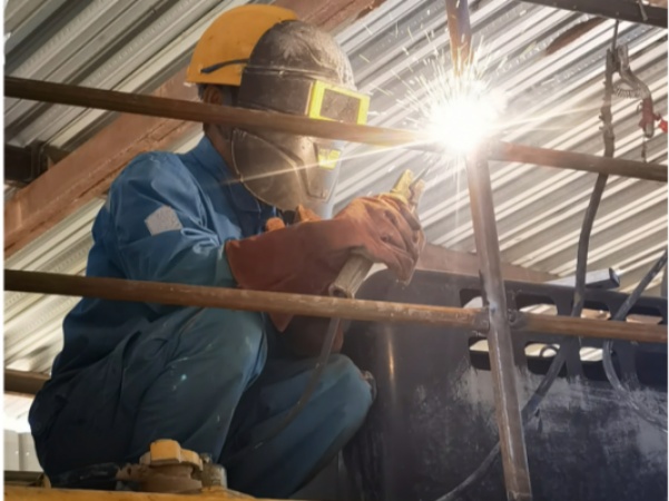當時里面溫度高達40多度,呂道廣并不驚訝,他說“這比前幾天可涼快多了”,此時的他在進行挖機護欄焊接,更好保護挖機設(shè)備,降低事故風險。即便早已得心應(yīng)手,他也始終保持謹慎與專注,陽光斜射進去,呂道廣身上閃耀的是火花的光芒,更是“海螺精神”的光芒。