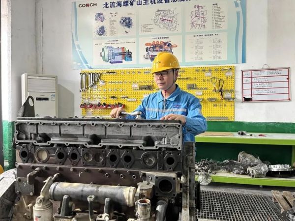 在部隊(duì)服役期間,歐振源從事的就是裝備維修工作。退伍后,帶著這份熱情與執(zhí)著,他于2007年進(jìn)入了北流海螺,入職后沒(méi)兩年就組織完成了首臺(tái)ZF變速箱的自營(yíng)大修工作,在維修崗位上嶄露頭角。此后從維修技師、技術(shù)員到工段長(zhǎng)再到如今的中層管理人員,在一線工作的十多年里,他把每一個(gè)工程機(jī)械設(shè)備都搞得門(mén)清,被同事們稱為“行走的設(shè)備說(shuō)明書(shū)”。歐振源不僅維修技術(shù)過(guò)硬,而且勤于思考、善于鉆研,這些年他帶著維修團(tuán)隊(duì)一起自制了沖擊器拆裝專用工具、輪胎充氣防爆裝置、總成件解體與裝配旋轉(zhuǎn)架臺(tái)、200噸的自制壓裝臺(tái)等多項(xiàng)實(shí)用工具,而研制的無(wú)線遙控式輪胎拆裝機(jī),不僅使輪胎拆裝時(shí)間縮短三分之二以上,還直接降低成本近70萬(wàn)元,并獲得了實(shí)用新型專利。去年6月,以其名字命名的創(chuàng)新工作室成立,越來(lái)越多的員工參與其中,而歐振源也毫無(wú)保留地向身邊的同事傳授他的技術(shù)和經(jīng)驗(yàn),并和大家一起攻克一個(gè)又一個(gè)難關(guān)。在海螺工作以來(lái),他先后被評(píng)為北流海螺先進(jìn)個(gè)人、海螺工匠、海螺集團(tuán)勞動(dòng)模范,并于2023年被授予“廣西五一勞動(dòng)獎(jiǎng)?wù)隆保鎸?duì)同事的贊譽(yù),歐振源平淡的說(shuō)“我只是做了自己該做的,這既是一個(gè)老兵的追求,也是作為海螺人的擔(dān)當(dāng)?!?/span>