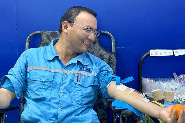 參與本次獻血有的是多次獻血的“老將”,有的是第一次獻血的“新手”。廣英公司碼頭工段司磅員成家興是在場年紀(jì)最大的志愿者,當(dāng)?shù)弥窘M織獻血時,沒有獻血經(jīng)驗的他第一時間報了名,“我是第一次參加獻血,很激動也很榮幸,想到我的血液能夠幫助到他人,就覺得很有意義?!钡V山分廠廠長助理瞿不理多次參加無償獻血活動,這次他又積極報名,奉獻大愛,獻血400毫升,“在周圍朋友同事的感染下,我嘗試了無償獻血,雖然中途有過中斷,但我很慶幸沒有放棄,之后我也會繼續(xù)堅持下去”。