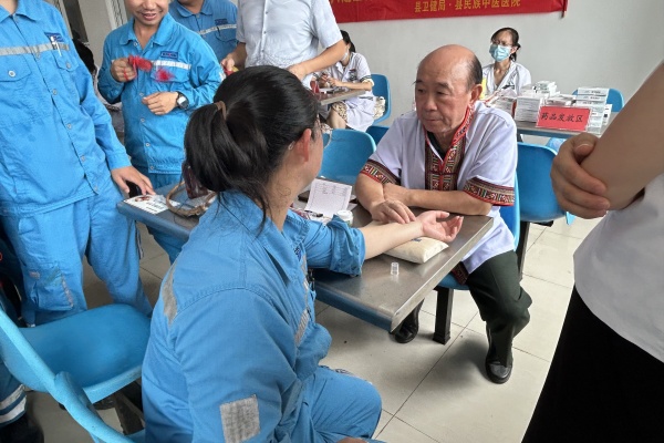 活動中,縣民族中醫(yī)醫(yī)院優(yōu)秀的醫(yī)師團(tuán)隊(duì)為公司員工提供了免費(fèi)的健康咨詢、測量血壓血糖、送瑤藥防蚊蟲香囊,提供中醫(yī)適宜技術(shù)健康干預(yù)等服務(wù),并開展皮膚及肺部多發(fā)病、疑難病診治?,F(xiàn)場開展拔罐、針灸、推拿等中醫(yī)適宜性治療,開展中醫(yī)藥健康知識宣教,發(fā)放高血壓、糖尿病防治等中醫(yī)藥健康知識宣傳資料。此外,醫(yī)生們還向職工介紹了一些常見的疾病預(yù)防知識,叮囑員工時刻注意養(yǎng)成健康的生活方式和習(xí)慣。瑤醫(yī)在診斷方法上除了望、聞、問、觸之外,常用的還有甲診、掌診、舌診、耳診和面診等,瑤醫(yī)使用藥物品種約836種,瑤醫(yī)為江華特色醫(yī)種。