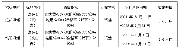 根據(jù)2021年8月-2022年1月進(jìn)賢海螺煤矸石需求,計(jì)劃進(jìn)行公開(kāi)招標(biāo),選定中標(biāo)人,為體現(xiàn)公平、公正、公開(kāi)的原則,拓寬采購(gòu)渠道,現(xiàn)將招標(biāo)相關(guān)事宜公告如下: