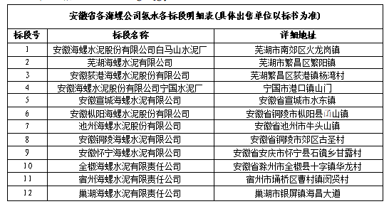 安徽荻港海螺水泥股份有限公司擬對(duì)安徽地區(qū)12家基地子公司(蕪湖海螺、荻港海螺、白馬廠(chǎng)、寧國(guó)廠(chǎng)、宣城海螺、銅陵海螺、池州海螺、樅陽(yáng)海螺、懷寧海螺、宿州海螺、全椒海螺、巢湖海螺)2021-2022年度氨水進(jìn)行聯(lián)合招標(biāo)采購(gòu),為進(jìn)一步體現(xiàn)公開(kāi)、公平、公正、擇優(yōu)的原則,拓寬采購(gòu)渠道,保證采購(gòu)質(zhì)量,現(xiàn)將招標(biāo)采購(gòu)信息發(fā)布如下: