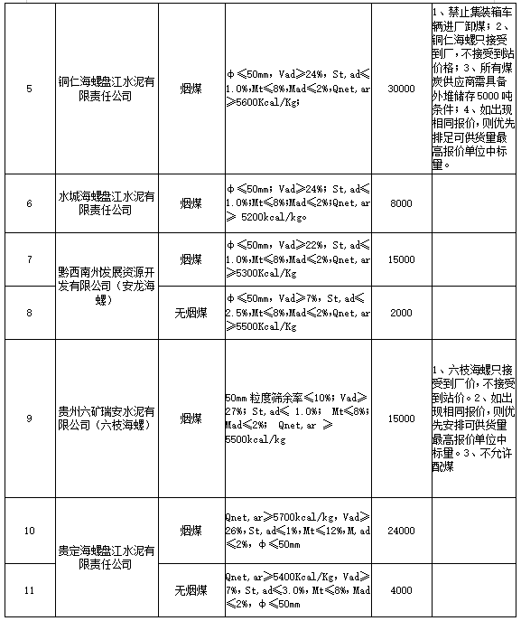 1.煙煤新客戶首次投標(biāo)量不允許超過3500噸(原則上一個(gè)整列),無煙煤新客戶首次投標(biāo)量不允許超過5000噸,且均只能投標(biāo)一家海螺公司(2020年1月-2021年7月期間未向海螺水泥貴州區(qū)域形成實(shí)質(zhì)性煙煤、無煙煤供貨的客戶均視為煙煤、無煙煤標(biāo)的投標(biāo)新客戶),原則上投標(biāo)可供量不得小于3000噸,但考慮安龍海螺本次無煙煤僅招標(biāo)2000噸,因此安龍海螺無煙煤投標(biāo)量不予限制。
