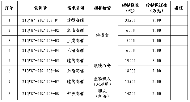 為進一步體現(xiàn)公平、公正、公開的原則,拓寬采購渠道,提高采購質(zhì)量,增強粉煤灰、脫硫石膏等物資保供安全性。浙江區(qū)域建德海螺、寧波海螺、象山海螺、上虞海螺、樂清海螺五家公司聯(lián)合統(tǒng)一對生產(chǎn)水泥所需的粉煤灰、脫硫石膏等物資采購進行公開招標,現(xiàn)將相關(guān)事宜公告如下: