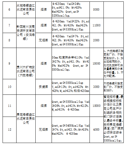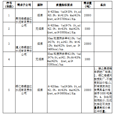 海螺水泥貴州區(qū)域擬對2021年11月21日至2021年12月20日生產(chǎn)用煤炭進行公開招標,選定中標單位,現(xiàn)將相關(guān)招標事宜公示如下: