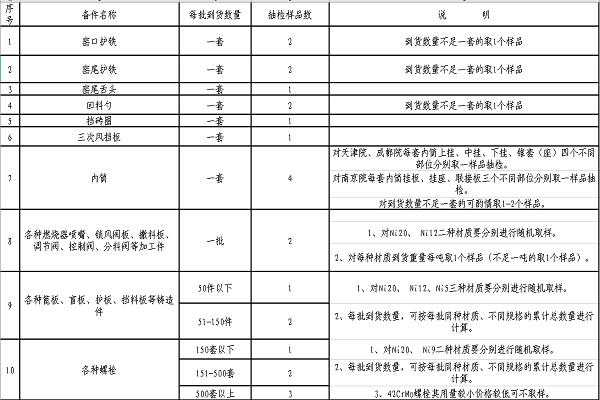 5.5對于內(nèi)筒的取樣、抽查,須對上掛、中掛、下掛、錐套、聯(lián)接板等幾個不同部位分別進行取樣、抽檢(聯(lián)接螺栓按螺栓品種取樣),以驗證其一套組件合格性如何;