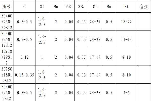 注:根據(jù)相關(guān)設(shè)計院設(shè)計標準并考慮到國內(nèi)耐熱鋼廠家實際生產(chǎn)情況,其中Ni20按照18-22執(zhí)行。
