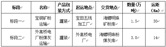 本次運輸業(yè)務為我公司采購寶鋼散罐礦粉和外高橋電廠散罐粉煤灰的運輸:一共分為兩個標段:標段一:寶鋼礦粉運輸--依據(jù)招標文件