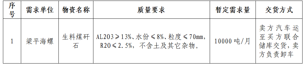 梁平海螺水泥有限責(zé)任公司擬對生料煤矸石組織采購招標(biāo),為進(jìn)一步體現(xiàn)公平、公正、公開的原則,拓寬采購渠道,提高采購質(zhì)量,現(xiàn)將招標(biāo)采購信息發(fā)布如下: