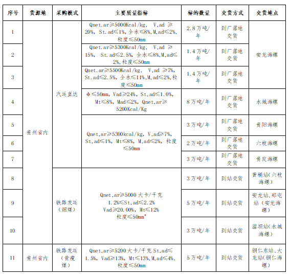 2.投標(biāo)人所提供礦點(diǎn)煤炭生產(chǎn)能力30萬(wàn)噸/年以上(含30萬(wàn)噸/年),礦點(diǎn)屬于貴州省內(nèi)資源;