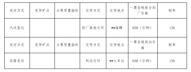 6.投標(biāo)礦點(diǎn)的煤質(zhì)需符合所投標(biāo)段煤質(zhì)要求,招標(biāo)方有權(quán)對(duì)投標(biāo)礦點(diǎn)進(jìn)行調(diào)研,若質(zhì)量不符合要求則取消投標(biāo)資格。