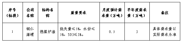 海螺水泥貴州區(qū)域擬對(duì)2022年上半年水泥生產(chǎn)用燃煤爐渣進(jìn)行二次公示公開(kāi)招標(biāo),選定中標(biāo)單位,現(xiàn)將相關(guān)招標(biāo)事宜公示如下: