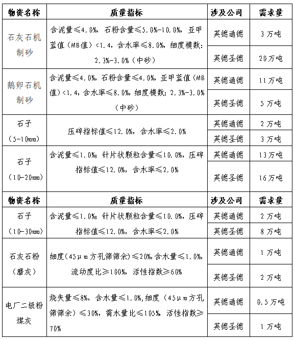 根據(jù)生產(chǎn)用料需求,擬對英德通德、英德圣德攪拌站2022年度機制砂、石子、石灰石粉(磨灰)和電廠二級粉煤灰進行招標,為進一步體現(xiàn)公平、公正、公開的原則,現(xiàn)將招標采購信息發(fā)布如下: