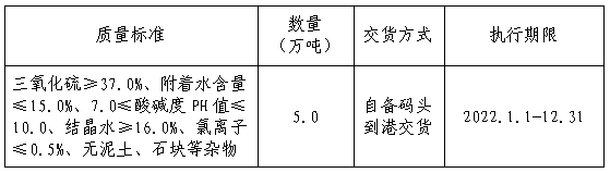 據(jù)生產(chǎn)經(jīng)營需求,馬鞍山海螺水泥有限責(zé)任公司將對2022年2月1日-2022年12月31日合同期改性磷石膏粉開展采購招標(biāo)工作,為進(jìn)一步體現(xiàn)公開、公平、公正的原則,現(xiàn)將相關(guān)事宜公告如下: